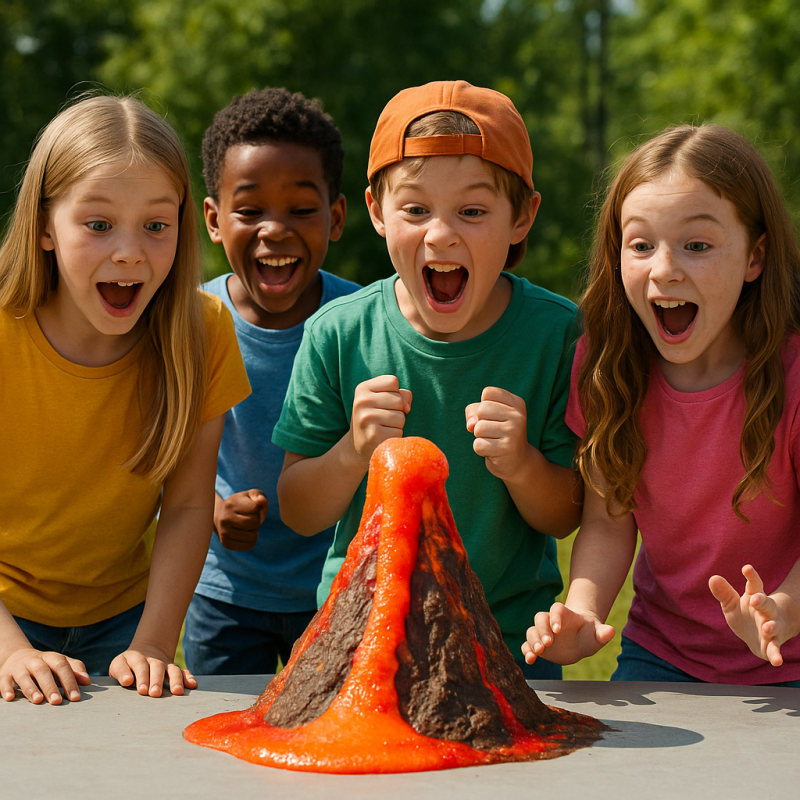 Przygotujcie się na wybuchy i kolory! Dzieci same „wywołują” wybuch mini-wulkanu, poznając tajniki nauki w ekscytujący i bezpieczny sposób. Nauka nigdy nie była tak zabawna!