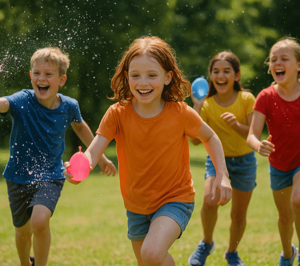 Balony wodne, mini Runmagedon i tor przeszkód - ruch, śmiech i emocje w letnim słońcu! Drużyny rywalizują w zabawie pełnej adrenaliny, rozwijając zręczność i współpracę.
