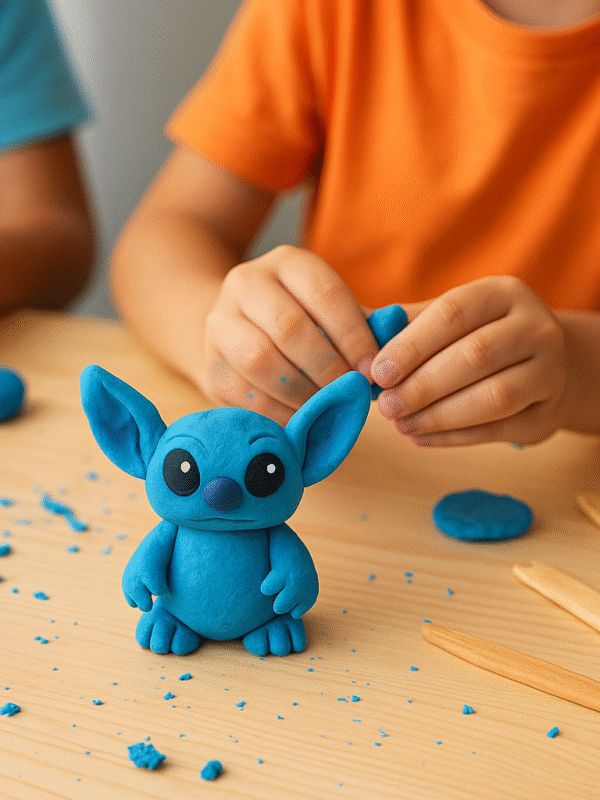 Tworzenie własnych mini-stworów z masy solnej, gliny lub papieru, inspirowanych Stitch’em. Dzieci uczą się kreatywnego projektowania postaci i historii.