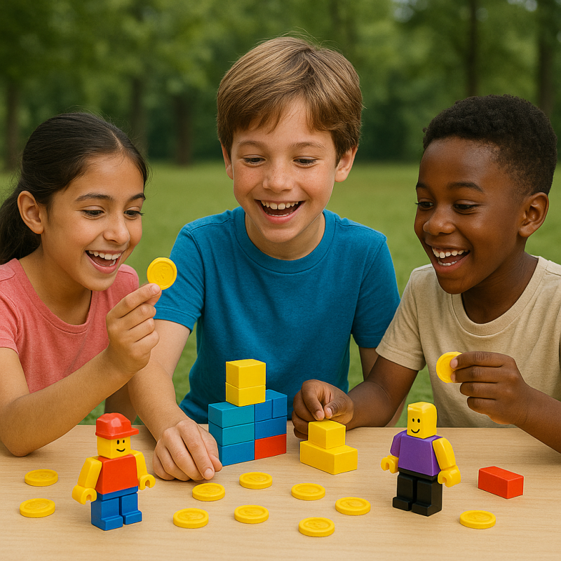 Razem zdobywamy wirtualne monety, wykonując zadania i misje, aby kupować ulepszenia: materiały, gadżety i power-upy. Gra łączy strategię, kreatywność i rywalizację drużynową.