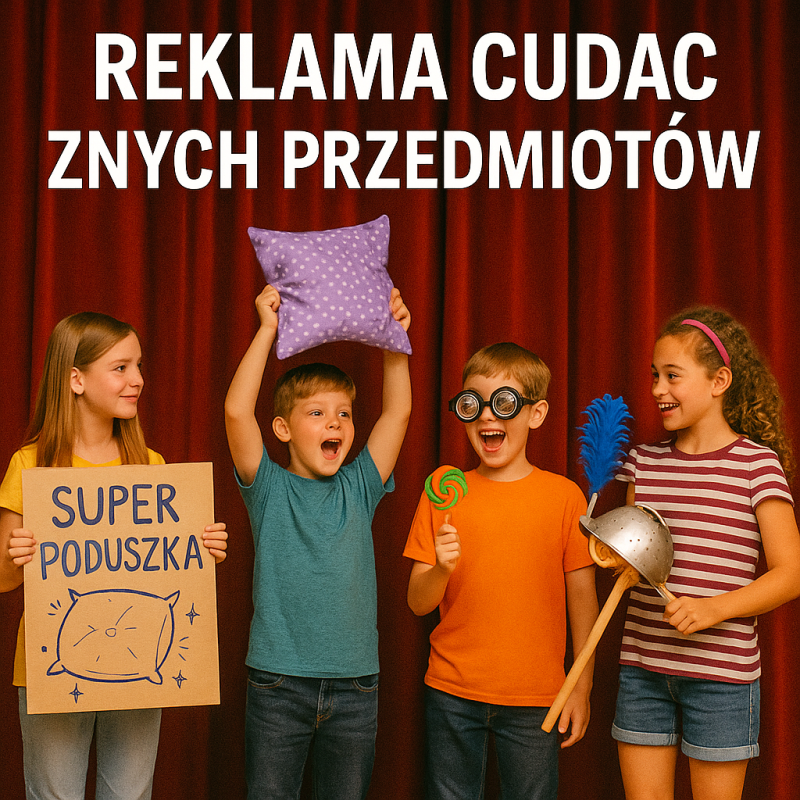 Wymyślimy zabawne reklamy najdziwniejszych rzeczy! W drużynach przygotujemy mini przedstawienia i zaprezentujemy je z humorem i wyobraźnią.